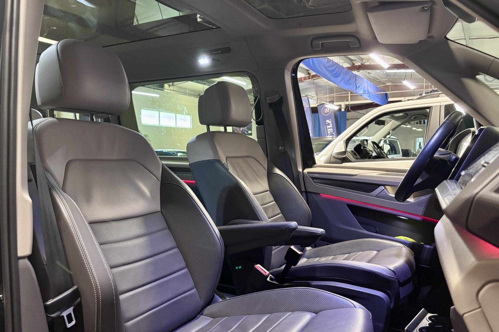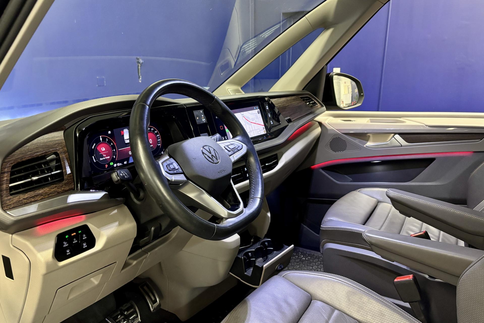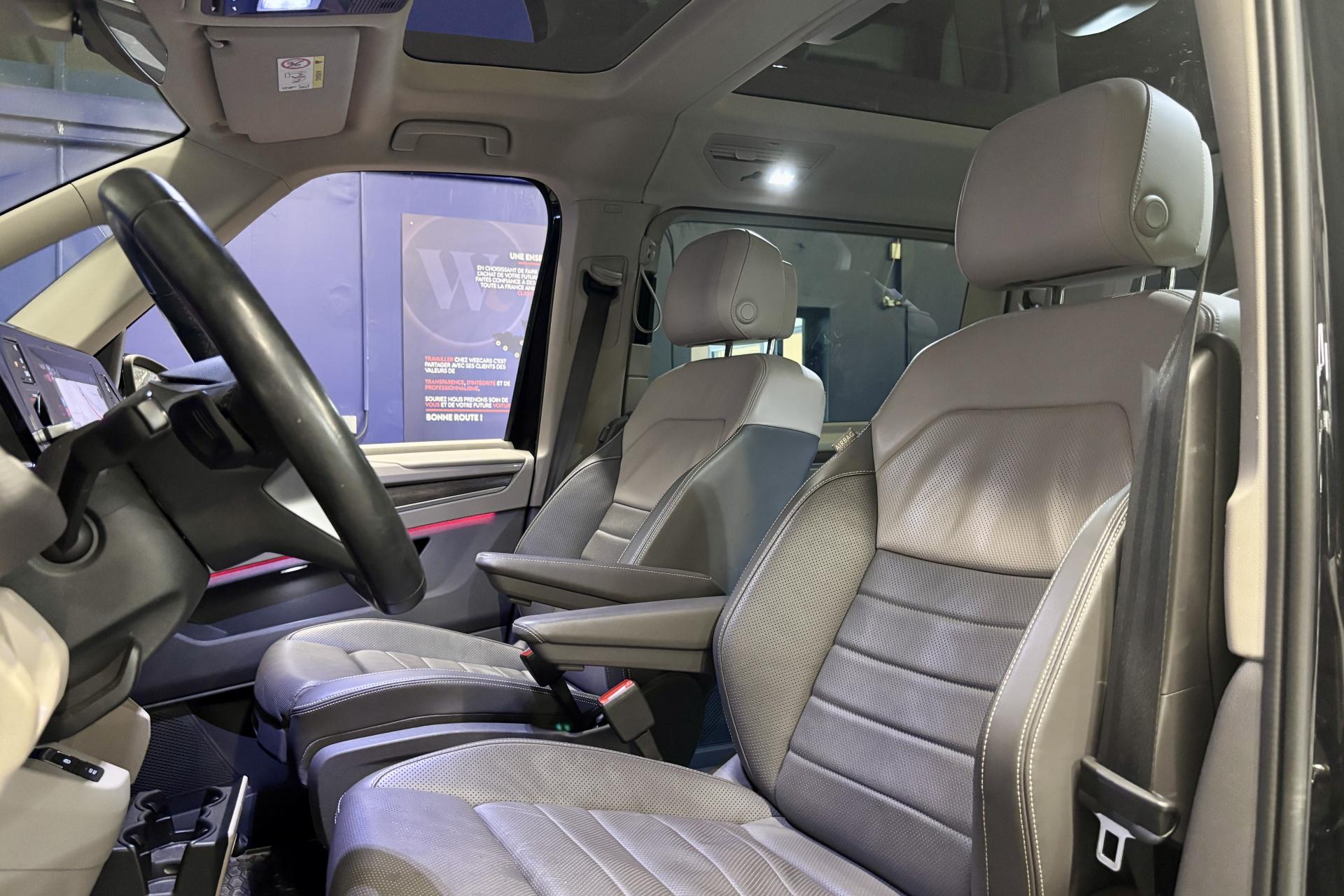 2 clés pliantes radiocommandées2 interfaces USB C à l'avant, 4 prises USB C dans le compartiment passagers2 préparations pour accoudoirs côté intérieur dans la 3e rangée de sièges2 sièges individuels en 2ème rangée3 prises 12V3 sièges individuels en rang 38 haut-parleursAccoudoirs côté intérieur des sièges (amovibles et déplaçables) dans la 2e rangée de siègesAccoudoirs de siège avantAffichage tête hauteAirbag central avantAirbag pour conducteur et passager avec désactivation de l'airbag du passagerAirbags latéraux et rideaux (conducteur et passager)Airbags rideaux ARAnti-démarrage électroniqueApp-Connect, y compris App-Connect Wireless pour Apple CarPlay et Android AutoAppel d'urgence - EcallAppuies-têtes avant réglables 4 directionsAssistant d’évitement et assistant de braquageBaguette entre les projecteurs vernie Noir brillant avec deux baguettes chroméesBaguette rétroéclairée entre les projecteursBaguettes latérales et arrière chroméesBloc de feux arrière à LEDBoîte à gants éclairéeBoitiers de rétroviseurs extérieurs noir brillantCaméra de reculChauffage de siège pour les sièges de la cabine, à gauche et à droite réglables séparémentClimatisateur 3-Zones « Air Care Climatronic » avec contrôle à l'arrièreCommande vocale et préparation pour l’application Web AlexaCommutation des feux de jour avec allumage automatique des projecteursDétecteur de fatigueDigital Cockpit ProEclairage périmétrique dans la zone de la porte avec projection de logo de la silhouette MultivanEclairage périmétrique sur le hayon et éclairage d'ambiance à 30 couleursEclairage tous temps (ou feux antibrouillards)Feux de jour à LEDFonction "Coming home / Leaving home"Fonctionnement intermittent des essuie-glace, avec détecteur de pluieFront Assist avec détection des piétons et des cyclistesHayon électrique (ouverture/fermeture) avec fonctions Easy Open et Easy CloseInserts décoratifs «Dark Woodgrain Optic»Insonorisation intérieure supplémentaire PlusInterface téléphone ‘Confort’ avec chargeur inductionLane Assistant : assistant de maintien dans la voieLumière & visibilitéOutillage de bordPare-brise en verre de sécurité feuilleté, isolant et insonoriséPédalier avec caches en acier inoxydablePortes coulissantes électriques droite et gaucheProjecteurs IQ.Light - Matrix LEDRéception radio numérique DAB+Réglage du site des projecteurs, dynamique, avec feux de virage dynamiquesRégulateur automatique de distance ACC "stop & go" avec limiteur de vitesse et Car2XRégulation dynamique des feux de route Dynamic Light AssistRétroviseur intérieur électrochromeSiège conducteur massant avec mémoireSièges AV réglables en hauteurSièges avant avec appui lombaire ajustable électriquementSièges ergoComfort AGR à l'avant, en cuir, y compris ventilation de siège, réglables électriquement / Garnitures siège bicolore, bandes centrales de siège cuir "Savona", perforé pour sièges AGR, bourrelets latéraux Signal sonore et lumineux pour ceintures non attachées à l'avant et à l'arrièreSubdivision de compartiment de charge (capacité de charge 20 kg) avec crochet pour sac et filet à bagagesSystème d'aide au stationnement avant et arrièreSystème de contrôle de la pression des pneus (mesure directe)Système de détection de la signalisation routièreSystème de navigation «Discover Pro» avec écran tactile couleur de 25,4 cm (10”) y compris Streaming & InternetSystème de protection proactive des occupantsSystème de vision périmetrique Area View avec assistance manoeuvres stationnement Park AssistTiroirs sous les sièges extérieurs dans le compartiment passagers et 2 poubellesToit panoramique en verre (occultation de 90 %)Verrouillage centralisé avec système de fermeture et de démarrage sans clé Keyless Advanced avec safelockVolant cuir multifonction avec palettes au volant