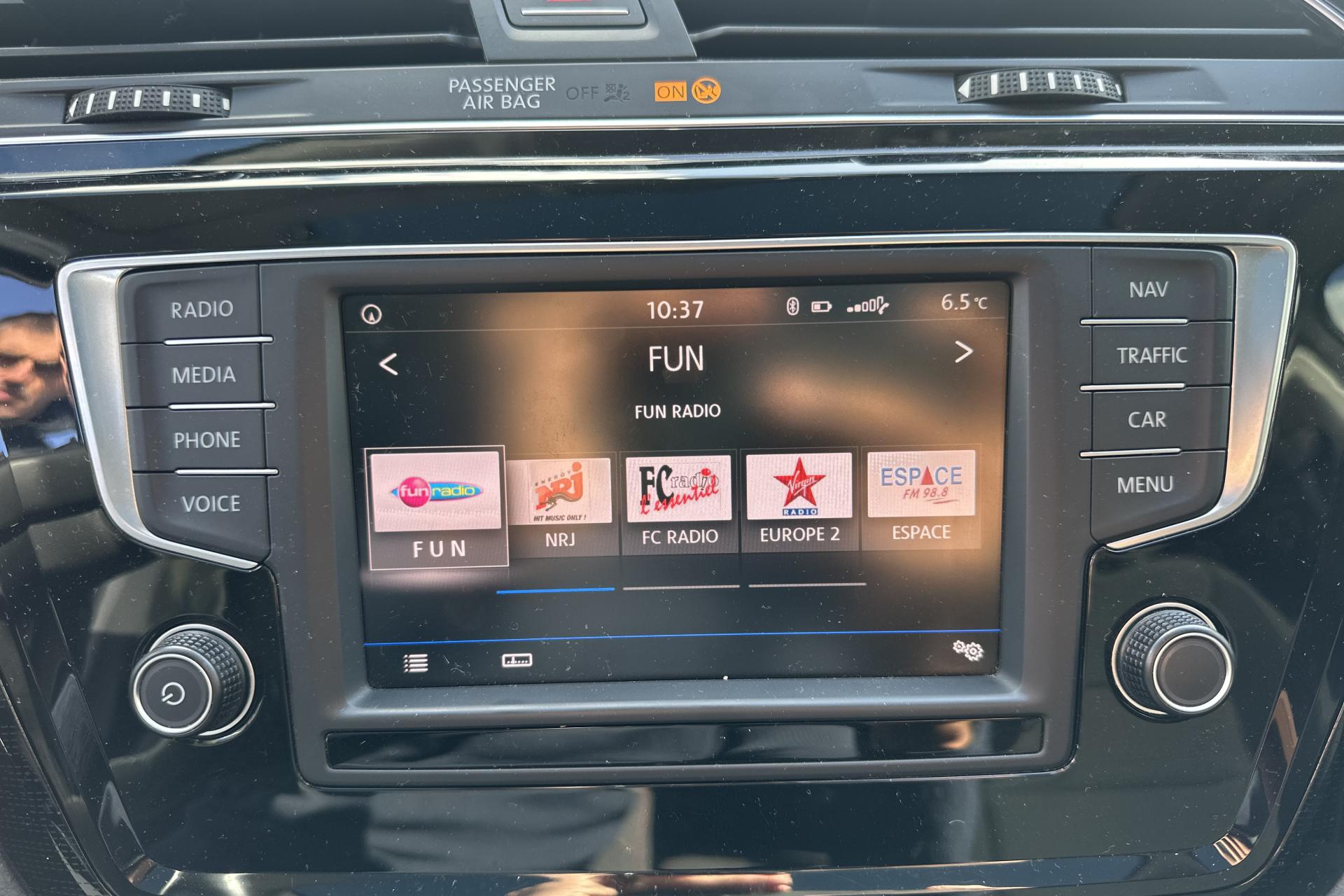 3 ceintures de sécurité arrière 3 points sur les sièges de rang 2Accoudoir central avant ajustable avec rangement, porte-gobelets et prise 12VActivation automatique des feux de détresse en cas de freinage d'urgenceAide au stationnement avant et arrière avec signaux sonores et visualisation de la distance des obstacles sur l'écran de la radioAirbag genoux conducteurAirbag rideaux pour les 1ère et 2ème rangéesAirbags frontaux conducteur et passager (déconnectable côté passager)Alerte de perte de pression des pneusApplications décoratives spécifiques ‘Sound’ pour tableau de bordAppuie-tête (3) réglables en hauteur sur la 2ème rangée de siègesAppuie-tête à l'avant, réglables en hauteurArrière des sièges conducteur et passager en simili cuirAssistant de démarrage en côteAumônière au dos des sièges conducteur et passager avantAvertisseur sonore et témoin d'oubli du port de la ceinture de sécurité à l'avantBadge ‘Sound’ sur le montant centralBoîte à gants réfrigéréeCalandre noir avec trois lamelles chroméesCaméra de recul avec visualisation de la zone située à l'arrière du véhicule sur l'écran de la radio ou de la radionavigationCar-Net "App-Connect"Car-Net «Guide & Inform» 36 moisCeintures de sécurité avant trois points à enrouleur, réglables en hauteur, avec prétensionneursClimatisation automatique ‘Pure Air Climatronic' tri-zone avec commande à l'avant et à l'arrièreCompartiment de rangement à gauche du volantCompartiment de rangement sous la planche de bordCompartiment de rangement sur la planche de bord avec trappeConnecting BoxConsole de pavillon avec un grand compartiment de rangementCorrecteur électronique de trajectoire ESP , système d'antiblocage des roues ABS , blocage électronique de différentiel EDS , antipatinage électronique ASR , régulateur électronique de couple MSR et assistance au contrebraquageCouvre-coffre enroulable et amovibleDirection électromécanique à assistance variable en fonction de la vitesseDossier du siège passager rabattableEclairage à LED de la plaque d'immatriculation arrièreEclairage de jourEntourage des aérateurs ChromésEssuie-glace avant avec commande d'intermittenceFatigue Detection : Système de détection de fatigue du conducteurFrein de parking électriqueInterface Bluetooth pour téléphone portable (mains-libres)Jantes en alliage léger 6,5J X 16“ ‘Woodstock’ spécifiques ‘Sound' et pneumatiques 205/60 R16 avec écrous antivolKit de réparation pour crevaisonMiroirs de courtoisie éclairés intégrés aux pare-soleilOeilletons (4 ) de fixation dans le coffreOrdinateur de bord ‘Plus'Pack ‘Drive Assist I'Pack VisibilitéPare-chocs et boîtiers de rétroviseurs extérieurs dans la couleur de carrosseriePédalier en acier inoxydablePlafonnier à extinction temporiséePlancher de coffre modulablePoignées de portes couleur carrosseriePorte-bouteille dans toutes les portes (1,5L à l'avant et 1L à l'arrière)Pre Safe Assist' : Système proactif de protection des passagersPréparation pour fixation de sièges enfants suivant norme ‘Isofix' pour tous les 3 sièges de la 2ème rangéePrise 12V dans le coffrePrise USBProjecteurs antibrouillard avec éclairage statique d'intersectionProtection antidémarrage électroniqueRampes de pavillon anodiséesRétroviseurs extérieurs électriques et dégivrants, asphérique côté conducteurRétroviseurs extérieurs incluant le rappel de clignotantSellerie tissu noir “Sound”Seuils de porte spécifiques ‘Sound’Sièges avant Confort réglables en hauteur avec réglage lombaireSièges individuels (3) de la 2ème rangée réglables en longueur, rabattablesSpots de lecture (2) à l'avant et à l'arrièreSystème de Freinage anti-multicollisionSystème Front AssistSystème Start/ Stop avec récupération d'énergie de freinageTablette pliable au dos des sièges conducteur et passager avantTapis de sol AV /ARTiroir sous les sièges avantTriangle de pré-signalisationVerrouillage centralisé avec télécommande à fréquence radio par clé rétractableVitres arrière et lunette arrière surteintées à 65%Vitres avant et arrière électriquesVolant 3 branches en cuir et pommeau de levier de vitesses en cuirVolant cuir multifonctionVolant réglable en hauteur et en profondeurXDS : Différentiel autobloquant électronique permettant une meilleure motricité en courbe grâce à une répartition optimale de la puissance sur les roues avant