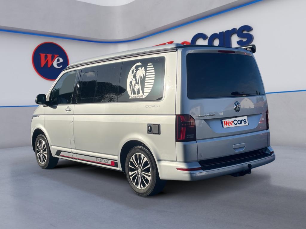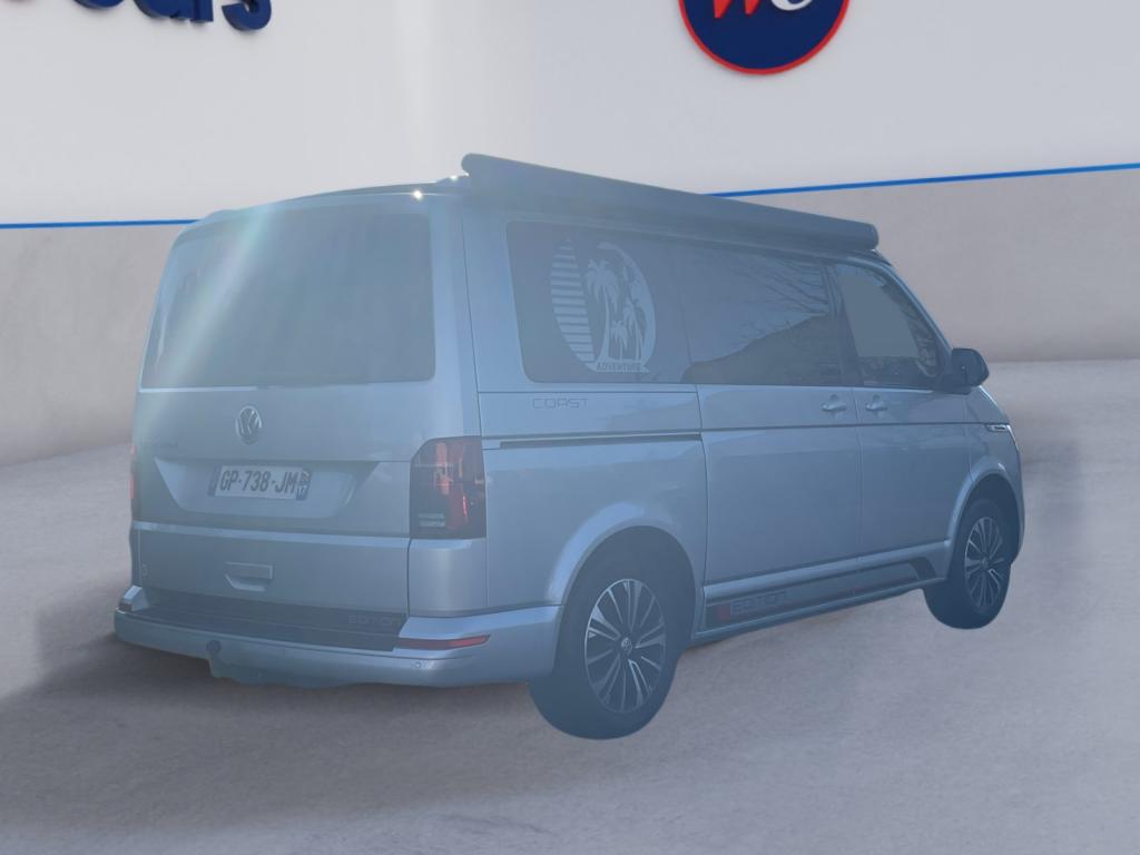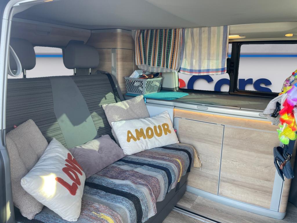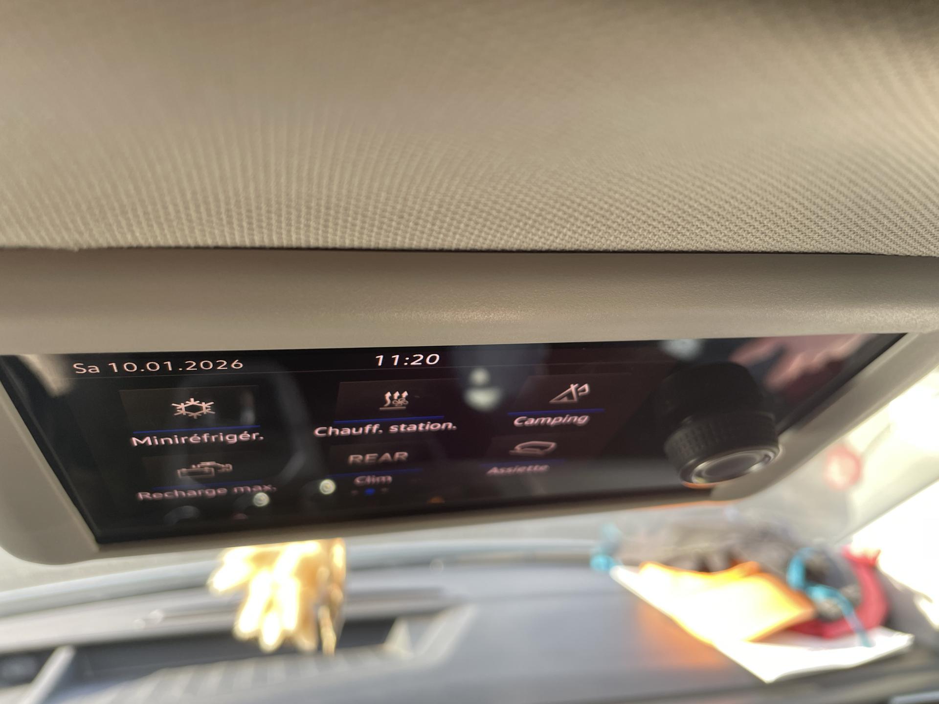 2 batteries supplémentaires, sans entretien, (1 batterie supplémentaire avec relais de coupure)2 clés pliantes radiocommandées pour le système de verrouillage centralisé2 connexions USB (type C) dans le tableau de bord4 jantes en acier 7J x 178 haut-parleursAffichage multifonction "Premium" avec écran polychromeAfficheur de niveau d'eau de lave-glaceAirbags frontaux pour conducteur et passager, rétracteurs à gauche et à droite et désactivation de l'airbag du passagerAirbags latéraux et de tête pour conducteur et passager avantAlimentation 230 V avec fonction de chargement pour batteries de véhicule ainsi que prise 230 V dans l'habitacleAncrage pour siège-enfant ISOFIX et Top TetherAppel d'urgence - EcallAppui lombaire pour siège individuel droit dans la 1re rangée de sièges (réglable manuellement)Appui lombaire pour siège individuel gauche dans la 1re rangée de sièges (réglable manuellement)Appuie-tête à l'avant, réglables en hauteurAppuis-tête AR inclinables et réglables en hauteurArmoire avec cuisine en placage “Bright Oak” avec raccord pour douche extérieureAssistant de compensation du vent latéralAssistant de démarrage en côteAvertisseur sonore un tonBanquette/couchette 2 places, coulissante et rabattable en 2 couchages, dans la 3ème rangée de siègesBatterie standard et alternateur plus puissantBoîte à gants éclairéeBoîtiers des rétroviseurs extérieurs noirsCaches d'obscuration en tissu, pour la cabineCar-Net "App Connect"Charnières pour portes arrière/hayon en version normaleChâssis 17" avec frein à disque 17" à l'avant et frein à disques 16" à l'arrièreChauffage d'appoint dans le compartiment passagers/de charge, chauffage (à régulation mécanique) dans la cabineChauffage stationnaire programmable à air ; avec radiocommande ; chauffage auxiliaireClimatisation “Climatic” (semi-automatique) dans la cabine et 2e chauffage dans le compartiment passagersColonne de direction réglable en hauteur / profondeurCombiné d'instruments (km/h); affichages de vitesse, compteur total./ journalier, régime, niveau carburant, heureConcept d’éclairage intérieur “Camper” Confort Plus au LED avec lampes dans le toit relevable et sur le hayonContrôle de pression des pneus ( TPMS )Correcteur électronique de trajectoire ESP avec aide au freinage d'urgence AFU, système antiblocage des freins ABS, système de stabilisation de la remorque, système anti-patinage ASR, régulateur de couple d'inertie moteur MSR et anti-démarrage &eacDétecteur de fatigueDirection assistée électromécaniqueDouble baguette de calandre chroméeEclairage de jourEclairage du marchepied avec inscriptions "California"Eclairage du marchepied, sur les portes dans la cabine et les portes coulissantes dans l’espace passagersFenêtre coulissante à l'avant et fenêtre fixe à l'arrière, dans l'espace passagers, à gaucheFenêtres latérales à l'avant et l'arrière, dans l'espace passagers, à droiteFermeture du hayon sans fonction de déverrouillage de l'intérieurFeux antibrouillard arrièreFeux arrière en version standardFonctionnement intermittent des essuie-glaceGarniture de plancher en feutre velours (moquette) dans la cabineGarnitures de siège en tissu, dessin "Mixed Dots"Hayon avec baie de fenêtreInserts décoratifs “Bright Brushed Grey”Interface pour téléphone portableLève-vitre électriqueLit sous toit (env. 2 000 x 1 200 mm) avec coupelles de ressort et matelasLunette arrière (verre normal, dégivrante) avec essuie-glace/lave-glace de lunette arrièreMeuble de cuisine intérieur avec réfrigérateur "Waeco" (42 litres), réchaud à gaz 2 feux avec allumage piezo (brûleurs 1800W, bouteille de gaz Type 907) et un point d'eauOutillage de bord et cricPare-Brise feuilleté AthermiquePare-chocs (plastique) peints dans la teinte du véhiculePare-soleil avec miroir, étiquette d'airbag sur le pare-soleil du passager avantParkPilot, système d'aide au stationnement acoustique AV/ARPeinture uniePneus 215/60 R17 C 109/107T à résistance au roulement optimiséePoids total admissible 3080 kgPoignées (rabattables et à retour freiné) sur le cadre de toitPoignées d'accès sur le montant avant, côté conducteur et passager avantPoignées de portes intérieures noiresPorte coulissante à droite dans l'espace passagersPréparation pour dispositif d'attelage (y compris stabilisation d'attelage)Prise 12VPrise à l'avant (sur le tableau de bord dans le vide-poches ouvert)Projecteurs doubles halogèneProtection centrale de roueProtection de seuil de chargement en plastiqueRails de fixation sur le toit (préparation pour galerie porte-bagages coulissante)Rallonge de lit avec matelasRéception radio numérique DAB+Réglage du site des pharesRégulateur et limiteur de vitesseRéservoir 70 LRétroviseur intérieur électrochromeRétroviseurs convexesRétroviseurs extérieurs réglables et dégivrants électriquementRevêtement de sol en plastique dans l'espace passagersRevêtement intérieur de pavillon pour CamperRoue de secours (acier) avec pneu normalSécurité-enfants dans les portes coulissantes dans le compartiment passagersSièges conducteur et passager avant pivotants avec accoudoirs et soutiens lombairesSuspension et amortisseurs (standard)Système Audio & Infotainment ‘Composition Colour’ avec écran couleur tactile 6,5’’Système de contrôle de l’état des pneus (selon homologation de type UE)Système de plafonniers Camper avec éclairage dans toit relevable, hayon et sur placard cuisineSystème de plafonniers Camper dans le compartiment passagersSystème Start/ Stop avec récupération d'énergie de freinageTable de camping située dans la porte coulissante et 2 chaises pliantes situées dans le hayonTableau de bord confort (partie inférieure en Palladium) avec inserts chromés et enjoliveurs peints en NoirTension de service 12 V plus 230 V convertisseur continu-alternatifToit relevable électro-hydraulique avec 3 fenêtres et une ouver