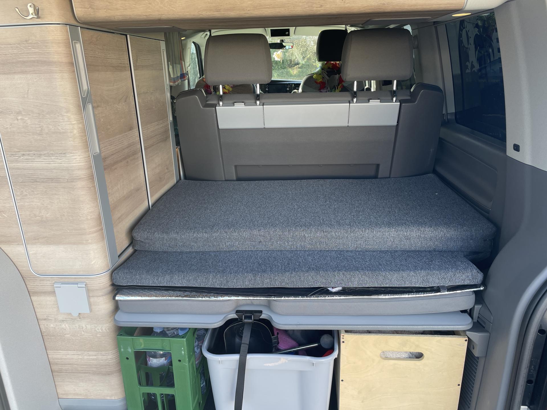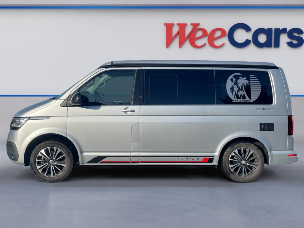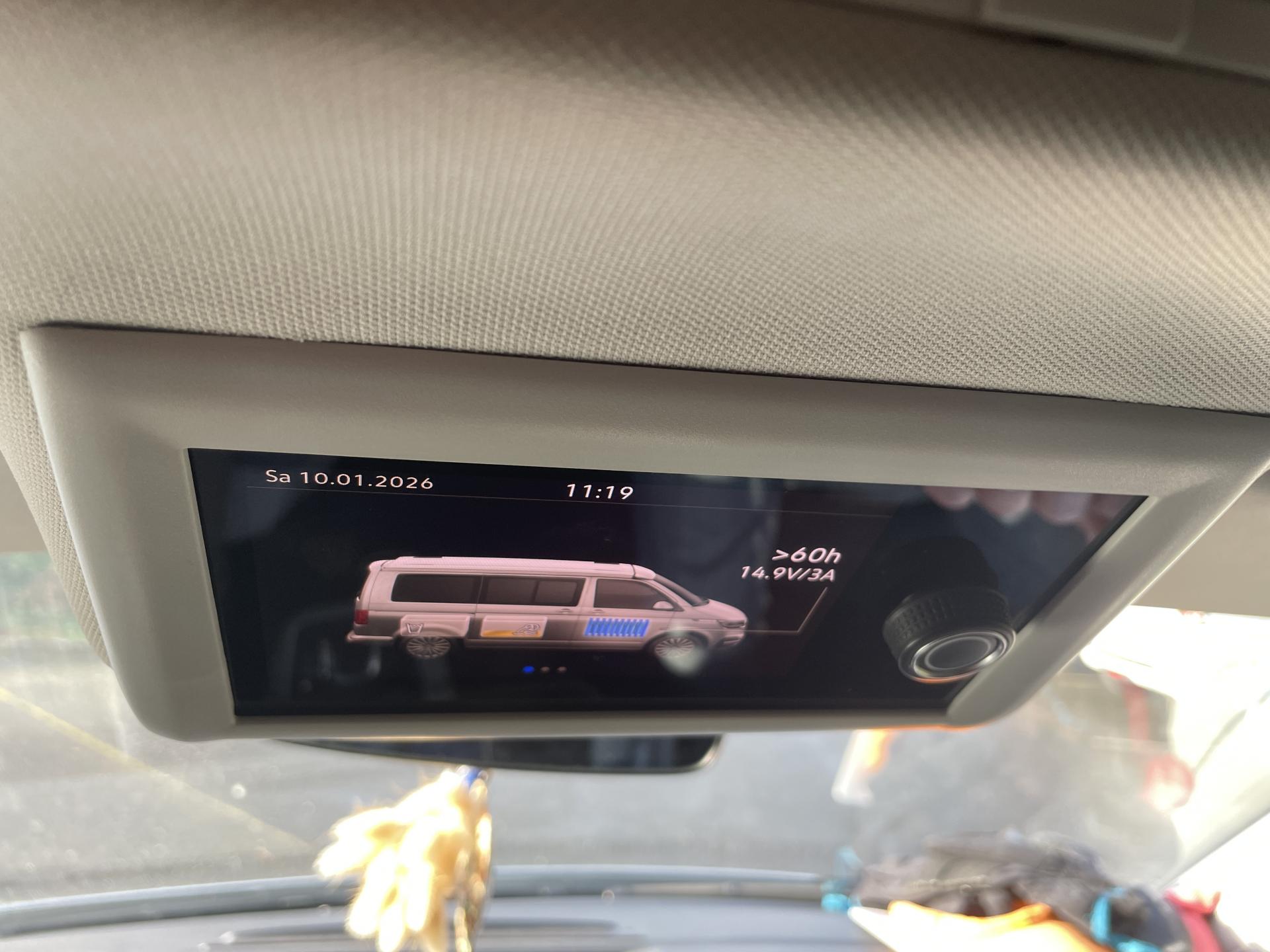 2 batteries supplémentaires, sans entretien, (1 batterie supplémentaire avec relais de coupure)2 clés pliantes radiocommandées pour le système de verrouillage centralisé2 connexions USB (type C) dans le tableau de bord4 jantes en acier 7J x 178 haut-parleursAffichage multifonction "Premium" avec écran polychromeAfficheur de niveau d'eau de lave-glaceAirbags frontaux pour conducteur et passager, rétracteurs à gauche et à droite et désactivation de l'airbag du passagerAirbags latéraux et de tête pour conducteur et passager avantAlimentation 230 V avec fonction de chargement pour batteries de véhicule ainsi que prise 230 V dans l'habitacleAncrage pour siège-enfant ISOFIX et Top TetherAppel d'urgence - EcallAppui lombaire pour siège individuel droit dans la 1re rangée de sièges (réglable manuellement)Appui lombaire pour siège individuel gauche dans la 1re rangée de sièges (réglable manuellement)Appuie-tête à l'avant, réglables en hauteurAppuis-tête AR inclinables et réglables en hauteurArmoire avec cuisine en placage “Bright Oak” avec raccord pour douche extérieureAssistant de compensation du vent latéralAssistant de démarrage en côteAvertisseur sonore un tonBanquette/couchette 2 places, coulissante et rabattable en 2 couchages, dans la 3ème rangée de siègesBatterie standard et alternateur plus puissantBoîte à gants éclairéeBoîtiers des rétroviseurs extérieurs noirsCaches d'obscuration en tissu, pour la cabineCar-Net "App Connect"Charnières pour portes arrière/hayon en version normaleChâssis 17" avec frein à disque 17" à l'avant et frein à disques 16" à l'arrièreChauffage d'appoint dans le compartiment passagers/de charge, chauffage (à régulation mécanique) dans la cabineChauffage stationnaire programmable à air ; avec radiocommande ; chauffage auxiliaireClimatisation “Climatic” (semi-automatique) dans la cabine et 2e chauffage dans le compartiment passagersColonne de direction réglable en hauteur / profondeurCombiné d'instruments (km/h); affichages de vitesse, compteur total./ journalier, régime, niveau carburant, heureConcept d’éclairage intérieur “Camper” Confort Plus au LED avec lampes dans le toit relevable et sur le hayonContrôle de pression des pneus ( TPMS )Correcteur électronique de trajectoire ESP avec aide au freinage d'urgence AFU, système antiblocage des freins ABS, système de stabilisation de la remorque, système anti-patinage ASR, régulateur de couple d'inertie moteur MSR et anti-démarrage &eacDétecteur de fatigueDirection assistée électromécaniqueDouble baguette de calandre chroméeEclairage de jourEclairage du marchepied avec inscriptions "California"Eclairage du marchepied, sur les portes dans la cabine et les portes coulissantes dans l’espace passagersFenêtre coulissante à l'avant et fenêtre fixe à l'arrière, dans l'espace passagers, à gaucheFenêtres latérales à l'avant et l'arrière, dans l'espace passagers, à droiteFermeture du hayon sans fonction de déverrouillage de l'intérieurFeux antibrouillard arrièreFeux arrière en version standardFonctionnement intermittent des essuie-glaceGarniture de plancher en feutre velours (moquette) dans la cabineGarnitures de siège en tissu, dessin "Mixed Dots"Hayon avec baie de fenêtreInserts décoratifs “Bright Brushed Grey”Interface pour téléphone portableLève-vitre électriqueLit sous toit (env. 2 000 x 1 200 mm) avec coupelles de ressort et matelasLunette arrière (verre normal, dégivrante) avec essuie-glace/lave-glace de lunette arrièreMeuble de cuisine intérieur avec réfrigérateur "Waeco" (42 litres), réchaud à gaz 2 feux avec allumage piezo (brûleurs 1800W, bouteille de gaz Type 907) et un point d'eauOutillage de bord et cricPare-Brise feuilleté AthermiquePare-chocs (plastique) peints dans la teinte du véhiculePare-soleil avec miroir, étiquette d'airbag sur le pare-soleil du passager avantParkPilot, système d'aide au stationnement acoustique AV/ARPeinture uniePneus 215/60 R17 C 109/107T à résistance au roulement optimiséePoids total admissible 3080 kgPoignées (rabattables et à retour freiné) sur le cadre de toitPoignées d'accès sur le montant avant, côté conducteur et passager avantPoignées de portes intérieures noiresPorte coulissante à droite dans l'espace passagersPréparation pour dispositif d'attelage (y compris stabilisation d'attelage)Prise 12VPrise à l'avant (sur le tableau de bord dans le vide-poches ouvert)Projecteurs doubles halogèneProtection centrale de roueProtection de seuil de chargement en plastiqueRails de fixation sur le toit (préparation pour galerie porte-bagages coulissante)Rallonge de lit avec matelasRéception radio numérique DAB+Réglage du site des pharesRégulateur et limiteur de vitesseRéservoir 70 LRétroviseur intérieur électrochromeRétroviseurs convexesRétroviseurs extérieurs réglables et dégivrants électriquementRevêtement de sol en plastique dans l'espace passagersRevêtement intérieur de pavillon pour CamperRoue de secours (acier) avec pneu normalSécurité-enfants dans les portes coulissantes dans le compartiment passagersSièges conducteur et passager avant pivotants avec accoudoirs et soutiens lombairesSuspension et amortisseurs (standard)Système Audio & Infotainment ‘Composition Colour’ avec écran couleur tactile 6,5’’Système de contrôle de l’état des pneus (selon homologation de type UE)Système de plafonniers Camper avec éclairage dans toit relevable, hayon et sur placard cuisineSystème de plafonniers Camper dans le compartiment passagersSystème Start/ Stop avec récupération d'énergie de freinageTable de camping située dans la porte coulissante et 2 chaises pliantes situées dans le hayonTableau de bord confort (partie inférieure en Palladium) avec inserts chromés et enjoliveurs peints en NoirTension de service 12 V plus 230 V convertisseur continu-alternatifToit relevable électro-hydraulique avec 3 fenêtres et une ouver