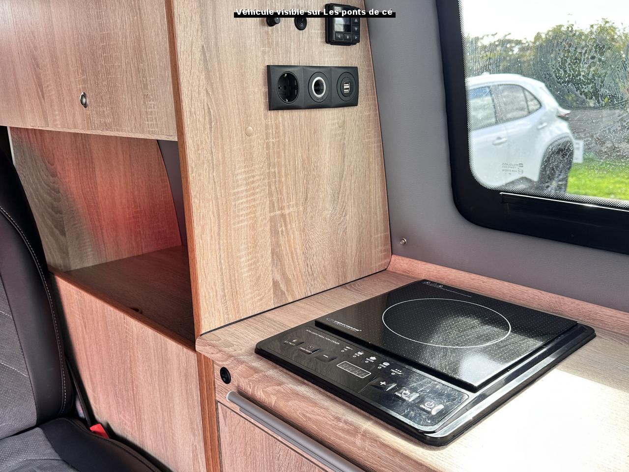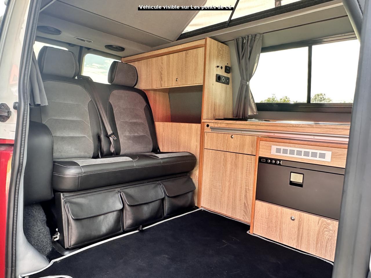 4 places assises et 4 couchages8 haut-parleursAide à la fermeture pour le hayonAide électrique à la fermeture pour porte coulissante droiteAirbag rideaux conducteur et passager avantAirbags frontaux pour conducteur et passager, rétracteurs à gauche et à droite et désactivation de l'airbag du passagerAirbags latéraux et de tête pour conducteur et passager avantAlimentation 230 V avec fonction de chargement pour batteries de véhicule ainsi que prise 230 V dans l'habitacleAmplificateur de voix électroniqueAncrage pour siège-enfant ISOFIX et Top TetherAnti-démarrage électroniqueAppuie-tête (réglables en hauteur et en inclinaison)Assistant de démarrage en côteAvertisseur sonore deux tonsBanquette/couchette 2 places, coulissante et rabattable en 2 couchages, dans la 3ème rangée de siègesBoitiers de rétroviseurs et poignées de portes peints dans la teinte de la carrosserieBuses de lave-glace dégivrantes à l'avant et afficheur de niveau d'eau de lave-glaceCaches d'obscuration en tissu, pour la cabineCalandre peinte en noir avec 3 baguettes chromésCartographie de l'Europe de l'Ouest (Carte SD)Châssis 16" avec système de freinage 16"Chauffage stationnaire programmable à air ; avec radiocommande ; chauffage auxiliaireCombiné d'instruments (km/h); affichages de vitesse, compteur total./ journalier, régime, niveau carburant, heureCommande vocaleContrôle de pression des pneus ( TPMS )Correcteur électronique de trajectoire ESP avec aide au freinage d'urgence AFU, système antiblocage des freins ABS, système de stabilisation de la remorque, système anti-patinage ASR, régulateur de couple d'inertie moteur MSR et anti-démarrage &eacCoupler BoxDétection de fatigue et affichage multifonction 'Plus'Direction assistée avec colonne de direction de sécurité, réglable en hauteur et en longueurEclairage des instruments, avec gradateurEclairage jour (allumé en permanence pendant la marche)Fenêtres latérales à l'avant et l'arrière, dans l'espace passagers, à droiteFeux antibrouillard arrièreFiltre à poussière et à pollenGarniture de plancher en moquette dans la cabineInterface Bluetooth pour téléphone portable (mains-libres)Interface pour téléphone portable "Comfort"Interface pour téléphone portable "Comfort" et interface Wi-FiLève-vitre électriqueLit sous toit (environ 2000 x 1200 mm) avec sommier confortLunette arrière (verre normal, dégivrante) avec essuie-glace/lave-glace de lunette arrièreMeuble de cuisine façon bois sombre avec douchette extérieureMeuble de cuisine intérieur avec réfrigérateur "Waeco" (42 litres), réchaud à gaz 2 feux avec allumage piezo (brûleurs 1800W, bouteille de gaz Type 907) et un point d'eauMobilier intérieur imitation bois sombreOccultation de l'habitacle et de la cabine de conduiteOeillets d'arrimage pour fixation de la charge pour garniture de plancher pour passage intensifOutillage de bord et cricPack "Lumière et Visibilité"Pare-Brise feuilleté AthermiquePare-soleil y compris miroir de courtoisie (éclairé) avec cache et poche, dans la cabine, à droitePare-soleil y compris miroir de courtoisie (éclairé) avec cache et poche, dans la cabine, à gauchePhare antibrouillard y compris feux de bifurcationPhares principaux halogène en verre clair (H7) en style à double réflecteurPneus 215/65 R16C 106/104T à faible résistance au roulementPoignées (rabattables et à retour freiné) sur le cadre de toitPorte coulissante à droite dans l'espace passagersProtection de seuil de chargement en plastiqueRéception radio numérique DAB+Réglage du site des pharesRéservoir en plastique (contenance : 70l)Rétroviseur extérieur droit, convexe et gauche, asphériqueRétroviseurs extérieurs, rabattables, réglables et dégivrants électriquementRadar de recul à l'AV et l'AR avec caméra de recul "Rear View"Rallonge de lit avec matelasRevêtement de sol en plastique dans l'espace passagersRevêtement latéral pour la partie habitation du CamperRoue de secours (acier) avec pneu normalSièges conducteur et passager avant pivotants avec accoudoirs et soutiens lombairesSuspension et amortisseurs (standard)Système de navigation "Discover Media Plus"Système de plafonniers Camper dans le compartiment passagersSystème Start/ Stop avec récupération d'énergie de freinageTable de camping située dans la porte coulissante et 2 chaises pliantes situées dans le hayonTable intérieure sur glissière intégrée au meuble de cuisineTableau de bord confort avec console centrale large et compartiment à bouteillesTension de service 12 V plus 230 V convertisseur continu-alternatifTiroir de rangementVerrouillage central avec radiocommande et commande intérieure de déverrouillage dans la portière conducteurVersion fumeur (prise 12 V avec allume-cigare, cendriers et 2 porte-gobelets dans le tableau de bord)Vide-poches de porte avec respectivement 2 compartiments avec porte-bouteille intégré dans la cabineVolant cuir multifonctions avec éléments de commande pour radio et téléphone portableVolant réglable en hauteur et en profondeur