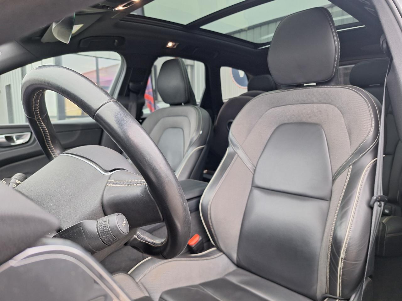 2 prises USB type-C4 points d'ancrage dans les panneaux latéraux du compartiment à bagagesAccoudoir central avant avec porte-gobeletsAirbag genoux conducteurAirbag passager désactivable avec témoin d'indication (on/off)Airbags conducteur et passager à déclenchement différenciéAirbags latéraux conducteur et passager SIPS-BAGAirbags rideauxAlerte Distraction Trafic (Ready to drive notification)Alerte franchissement de ligne activeAllumage automatique des projecteursAppuis-tête arrière rabattables électriquementAssise des sièges avant extensibleAssistance au démarrage en côteBouclier avant et Diffuseur arrière spécifiques avec inserts Noir LaquéBouton de verrouillage centraliséCâble de recharge de 4,5 mètres avec LED d'indication de chargeCalandre spécifique avec incrustations et contour Noir LaquéCapteur de pluieCeintures de sécurité à inertie à 3 points d'ancrage sur les 5 siègesChâssis DynamiqueCity Safety, système d'anticipation de collision intelligentClé gainée de CuirCleanZone Filtre à charbon de climatisation multi-actif AQS et fonction pré-ventilationClimatisation automatique bi-zone avec système de recirculation d'air et filtre anti-pollenCombiné d'instruments digital 12,3” nouvelle générationCommande vocale avancéeCommandes audio au volantConnexion BluetoothContour des vitres latérales Noir LaquéContrôle de la stabilité au roulis RSCCoques de rétroviseurs noir laquéCorrecteur électronique de trajectoire (ESC)Déclenchement automatique des feux de détresse lors d'un freinage d'urgenceDétecteur d'humiditéDirection assistée électrique asservie à la vitesseDossier arrière rabattable 60 / 40Eclairage d'accompagnement et éclairage d'approcheEclairage de coffreEclairage de la boîte à gantsEclairage des pieds à l'avantEclairage intérieur temporiséEcran tactile multimédia haute résolution 9”, personnalisableFeux antibrouillard arrièreFeux arrière à LEDFeux de freinage d'urgenceFeux de jourFilet de protection coffre / habitacleFonction climatisation de l'habitacle moteur coupéFonction Eco : optimisation des paramètres véhicule pour une conduite économique et écologiqueFonction Start/StopFrein de parking électronique automatiqueFreinage automatique post-collisionHayon électriqueIncrustations Aluminium MailléIndicateur de perte de pression des pneusInserts Noir Laqué sur le bouclier avant et arrièreJantes alliage 19” 5 branches double Noir / Diamant avec pneus 235/55 V R19Kit anti-crevaisonLimitateur et régulateur de vitesseMiroirs de courtoisie éclairésMise à jour du système à distanceMode de conduite personnalisableOrdinateur de bordOuverture des portes sans clé Keyless Entry incluant éclairage du sol dans les poignées de porte avant et Keyless mini-télécommande + Hayon électrique avec fonction Confort (sans les mains)Pack Digital ConnectPack EclairagePack StationnementPare-brise en verre feuilleté et colonne de direction rétractable en cas de chocPare-chocs arrière avec sorties d'échappement intégréesPavillon de toit AnthracitePédalier R-design en AluminiumPhares LED avec correcteur dynamique de la portée et feux de jour design marteau de ThorPommeau de levier de vitesses R-design en CuirPort de recharge sur l'aile avant gauchePorte-ticket de parking et d'autoroutePrécâblage électrique pour crochet d'attelagePréconditionnement de l'habitacle (chauffage ou climatisation)Préparation pour siège enfant ISOFIX pour sièges latéraux arrièrePrise 12V dans le coffreRadio numérique terrestreRampes de pavillon laquées noiresRappel d'oubli de bouclage des ceintures de sécurité avant et arrièreRappels de clignotants à LED intégrés aux rétroviseurs extérieursReconnaissance des panneaux de signalisationRétroviseur extérieur conducteur grand angleRétroviseur intérieur électrochrome sans contourRétroviseurs extérieurs photochromatiquesRétroviseurs extérieurs rabattables électriquementSécurité connectée : Alerte Feux de détresse et Chaussée glissanteSellerie Tissu / Cuir Nappa perforé Anthracite avec surpiqûres et passepoil BeigeSeuil de coffre en aluminiumSeuils de portes en Aluminium à l'avant badgés RechargeSiège conducteur à réglages électriques avec mémoireSièges à réglage lombaire électrique 4 positions à l'avantSièges avant réglables en hauteur électriquementSièges Sport Contour (renforts latéraux pour un meilleur maintien)Sonde de température extérieure et horlogeSpots de lecture à l'avantStructure de l'habitacle renforcée à l'acier de BoreSubwooferSystème Alerte Trafic en marche arrière avec freinage automatique en cas de danger (Rear auto brake)Système audio Volvo High Performance : 220 W, 10 HP, radio RDSSystème de contrôle de la descente (HDC)Système de contrôle de la stabilité et de la traction STCSystème de contrôle du freinage du véhicule VDCSystème de protection anti-sortie de routeSystème de protection collision frontaleSystème de protection en cas de sortie de route comprenant : Ceintures de sécurité actives à prétensionneurs, Assise des sièges avant à absorption d’énergie et Pédale de frein rétractable en cas de collision frontaleSystème de récupération de l'énergie au freinageSystème de réglage en hauteur des pharesSystème de surveillance de la vigilance du conducteurSystème intelligent d'informations au conducteur IDISTapis de sol R-designTélécommande de verrouillage centralisé avec clé de contact intégrée, fermeture à distance des vitres et du toit ouvrant et fonction panique (déclenchement du klaxon et des feux de détresse)Toit ouvrant panoramique en deux parties avec pare-soleil électriqueTransmission intégrale AWD à 4 roues motrices,gérée par électronique avec système Instant TractionTrappe à carburant intelligente sans bouchonTrousse de 1er secours, triangle de présignalisationVerrouillage automatique des portes à partir de 7 km/hVerrouillage manuel de sécurité enfantVitre